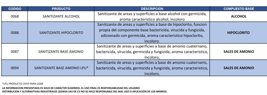 Si tienes dudas sobre que SANITIZANTE necesitas CONTACTANOS para brindarte información